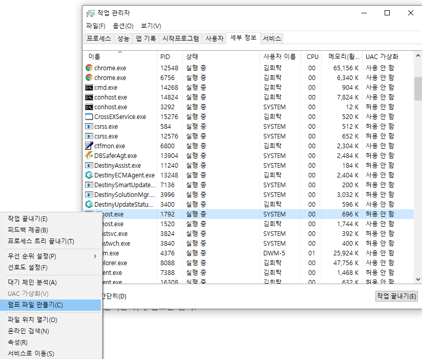 NT 서버 프로세스 상태 확인 및 덤프 생성 본문