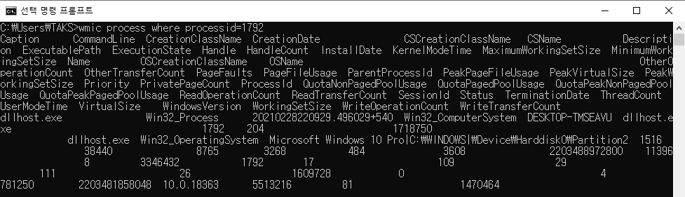 그래서 wmi command로 조회해 보면
