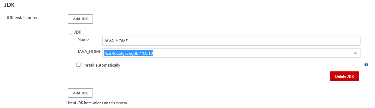 Jenkins를 통해서 빌드 관련 툴과 jdk를 자동으로 인스톨이 가능하나, 수동 설치 후 경로를 지정함