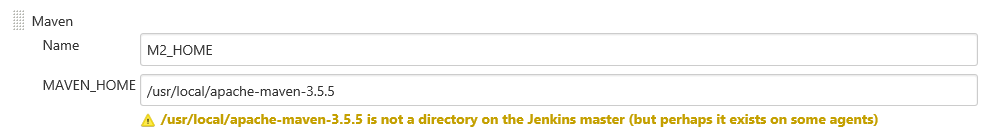※ 설치 경로를 잘못 입력할 경우, Zenkins에서 아래처럼 노란색으로 안내해줌, 올바른 값을 넣었는지 바로 확인 가능