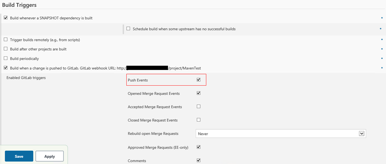 ② Gitlab Branch Merge 이벤트 발생 -> Build 트리거(유발)